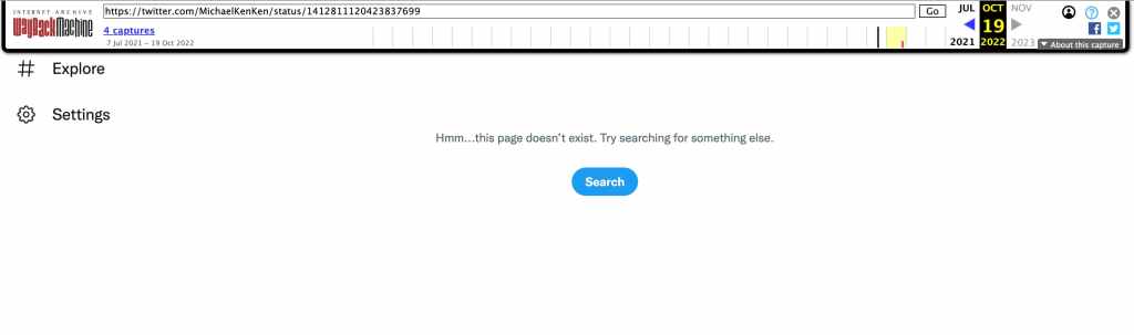 However, looking at the most recent archive record from October 2022, the tweet was no longer available.